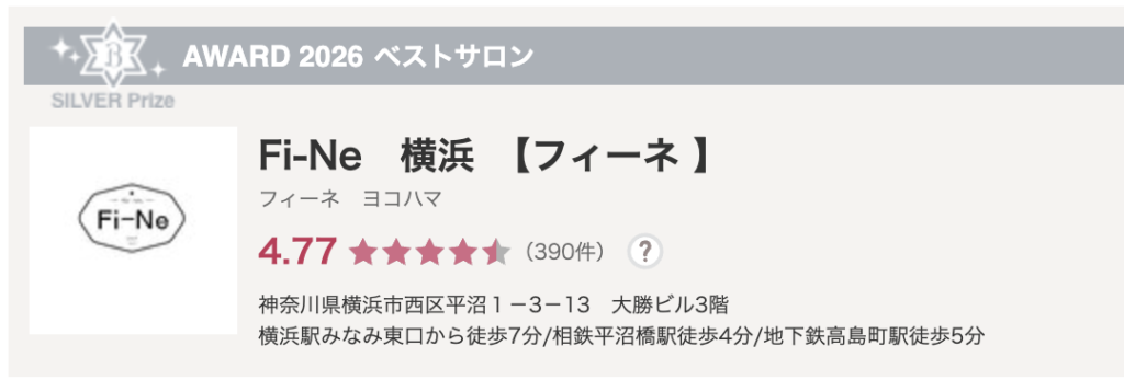 【Fi-Ne横浜店】HOT PEPPER Beauty AWARD 2026 ベストサロン部門 SILVER Prize 受賞✨
